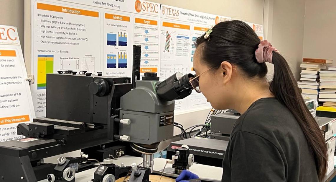SPEC student Xixi Lou is testing advanced SiC power chip
