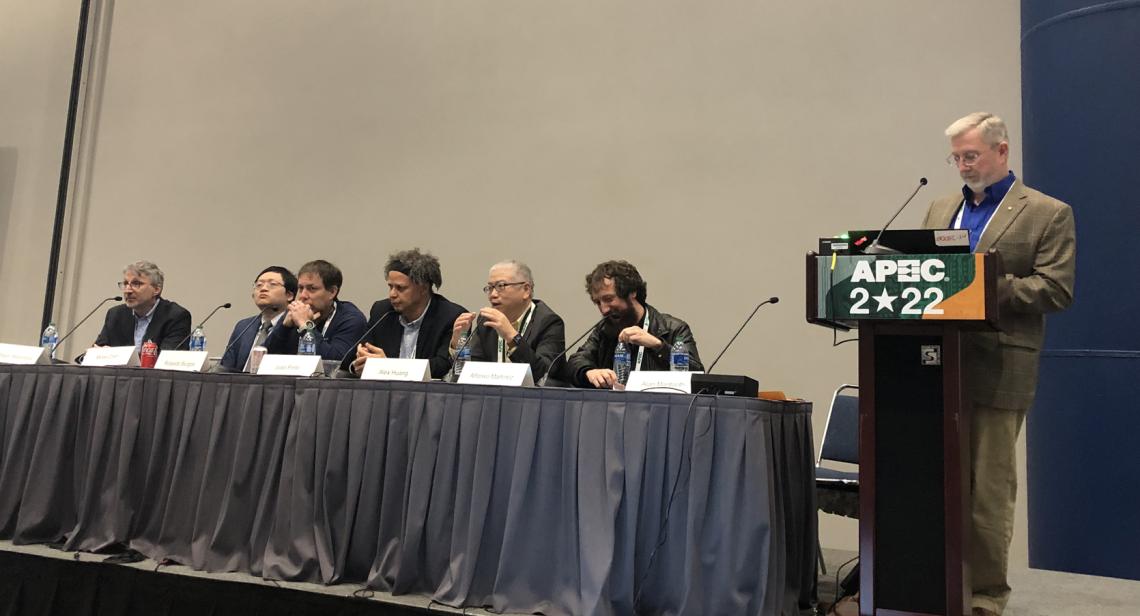 Professor Alex Huang and several researchers from the Semiconductor Power Electronics Center (SPEC) attended the 2022 IEEE APEC Conference in Houston, Texas from 03/20/2022 to 03/24/2022. Dr. Huang also served as a panelist in RAP SESSION #2 on the Challenges and Potential of “AI-Based Design” vs. “Conventional Design”.